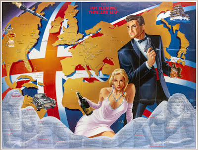 The Ian Fleming Thriller Map shows the real locations for all Bond’s escapades during the novels. The spy’s missions took him across four continents and dozens of countries-- to Japan, Seychelles, Mexico and French Guyana. Each spot, marked by cross-hairs, explains what happened for Bond, his rivals and lovers.