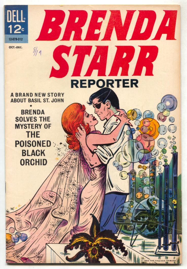 My outdoor orchids, cymbidiums, need to be divided in a specific way. Every time I start the procedure of hacking away at the roots (yes, hacking with a knife cleaned with a blowtorch), I think about rainforests and the quest for rare orchids. I’ve always been fascinated by orchids. When I was growing up, Brenda Starr, Girl Reporter, was my favorite comic strip. I wanted to be just like Brenda – an intrepid reporter traveling the globe in search of the story. Brenda Starr, the liberated, career-action reporter, was definitely my role model. Of course, my fantasy included a romantic Brazilian mystery man like Basil St. John who was always searching for a rare black orchid. Dale Messick’s original Brenda Starr comic strip that I followed in the Philadelphia Bulletin was full of romance, mystery, and exotic black orchids.